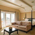 This second-floor room has a large, private balcony with an unobstructed view of the village and Mendocino Bay. The king bed is dressed in luxurious bedding and a down duvet. The bath is a large jetted spa tub and a separate, tiled shower and luxurious Shikai bath and body products.